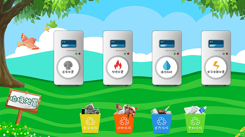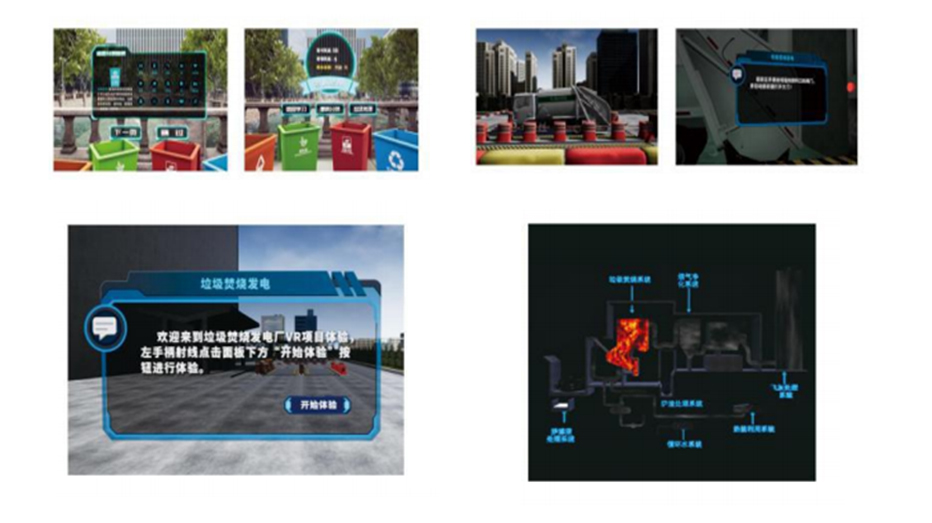 科普垃圾处理知识,在欢乐的游戏氛围中学习垃圾的分类投放。构建真实的生活场景,进行VR垃圾分类体验,拾取垃圾分类到垃圾桶中,并有相应的考核结果。