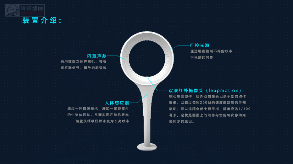 软件部分:展厅智能隔空触控系统、雷达定位捕捉系统、红外信号感知系统、声光电及多媒体控制系统。